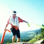 I’ve learned a lot these last few months running the 1500 vertical feet from my house up to the top of Mount Sanitas with prop or costume every Friday morning. I’ve learned carrying a wooden patio chair isn’t as hard as it might seem, while being dressed as Atlas and carrying a giant globe is very hard. Unless they see it in the commercial, most people just think a Snuggie is a long funning looking robe. Too many people in Boulder can watch a guy run by them in a tie with a briefcase and coffee and not smile. Dribbling a basketball along a rocky ridgeline trail is a risky endeavor. If you are carrying some swim noodles and you ask someone if the pool is still at the top, too many will genuinely think you are looking for a pool at the top. Moses did not carry a Fed Ex package and a volleyball with a red handprint on it, Tom Hanks in the movie Castaway did. Good friends will run with you, but those who run with you in costume are just as stupid as you. Treasure them. Even Jake the village idiot needs friends.