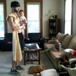 - Post run. The softer side of Atlas. By this point my kids are used to the costume. When I came home Maxon saw the sheet and the globe I was carrying and asked “did you go running?”