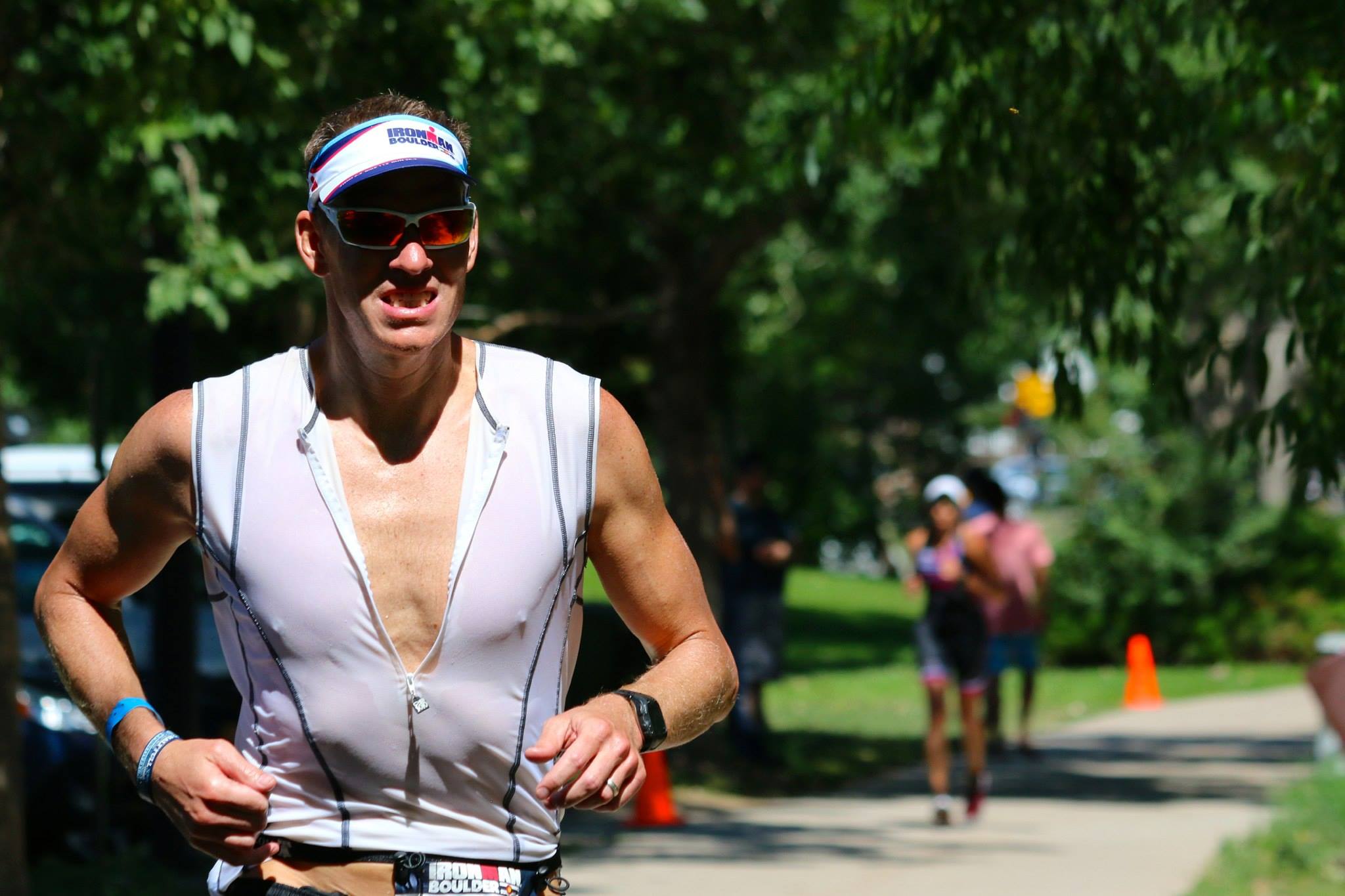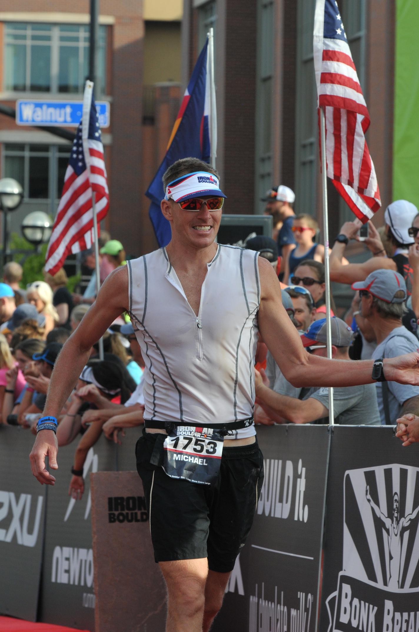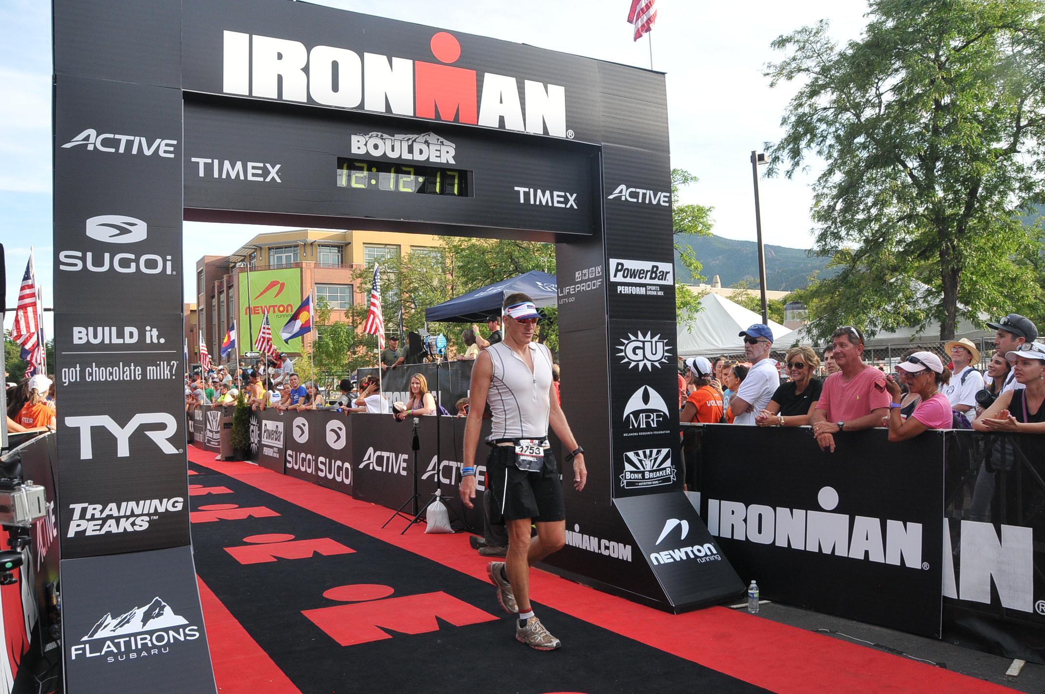I got moving again and managed to keep up a good fight but the heat of the day was really taking its toll. As I made my way through the first loop I began to see my expectations for the run fall away. It was slow at first, but eventually began a full on free fall. The desire to finish remained strong, but the strength to get there was fading. I was so very appreciative of the supportive words of friends and perhaps more overwhelmed by the support of strangers. The second loop involved a lot of walking. It was all I could do really. I had some doubts along the way about finishing at all. I would never wish ill on any other racers, but I must confess that I took comfort in seeing athletes that look considerably more fit than me, behind me and moving slower than I. I would see them struggle and a voice in my head would say “yes Mike, you are not the only one.”