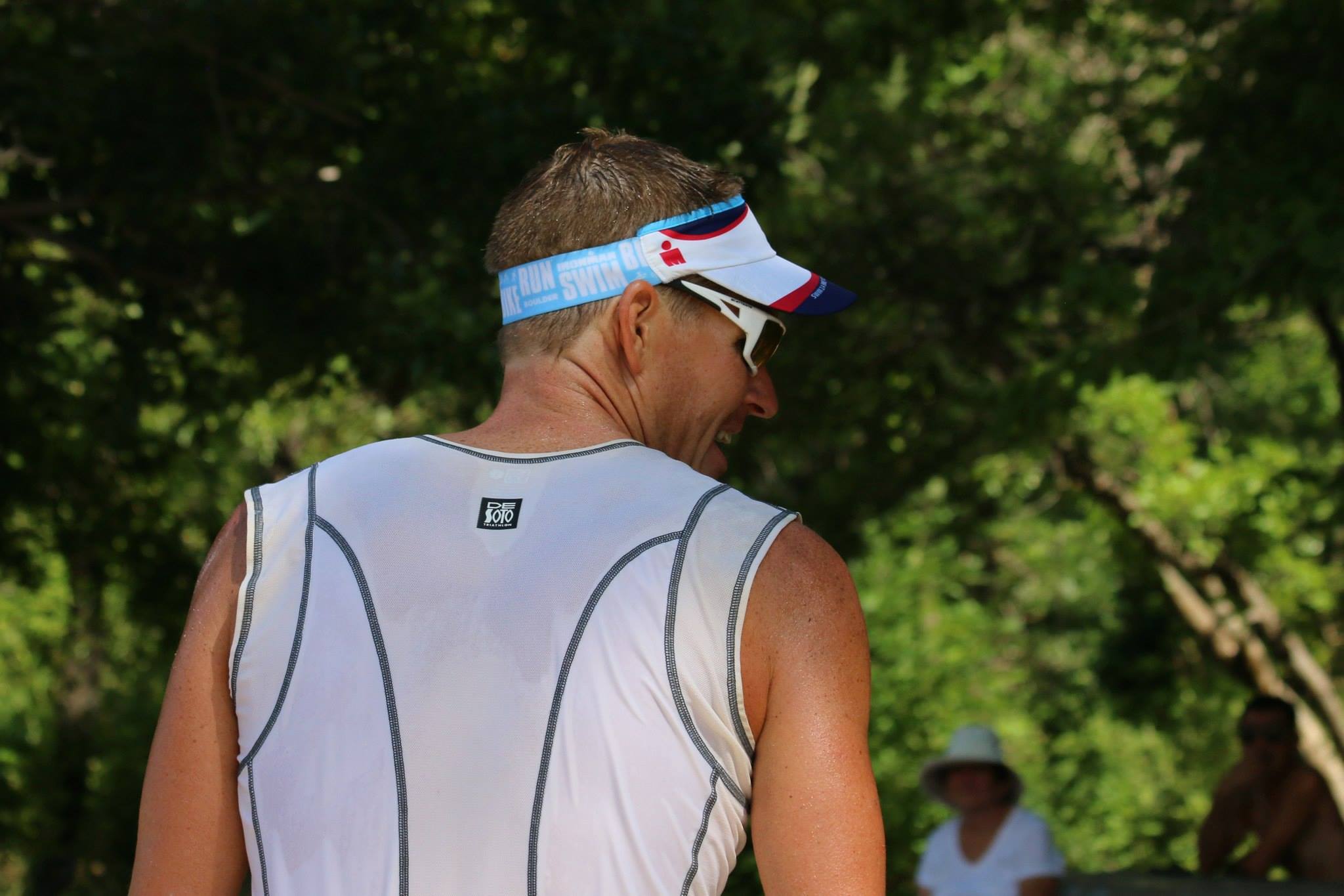 I had my first “what the heck am I doing out here?!?!” moment when I put my running shoes on in T-2. The reality of what lay ahead was sinking in. 2.4 miles of swimming, 112 biking, 6.5 hours and now I have a marathon left?! I think my brain chose to block this part out from prior experiences. The tent was so hot and uncomfortable, but I knew it was WAY more comfortable that what waited outside the tent. I was up for the challenge though and headed out.