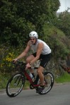 I was out in 55+ minutes and feeling good. I changed into bike shorts, headed out of the changing tent, then realized my bike shorts were on backwards. Back to the tent where I managed to spin the shorts around a full 360 degrees and I once again exited the tent with my shorts on backwards. JEEZ, Mike!! Get it together! Back in the tent and finally wearing my shorts properly, I was off on the bike and remembered that in an IM the hard things are often easy and the easy things hard.